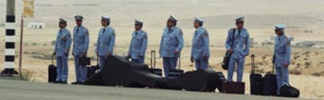 airport in Tel Aviv, dressed in full military regalia, and observing
