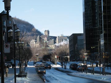 Üniversitenin Sherbrooke üzerindeki Roddick Kapılarından Place Ville