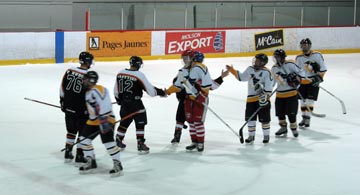 kız-erkek herkes hokey oynamayı sürdürür. Montreal Hokey Ligi (MHL)