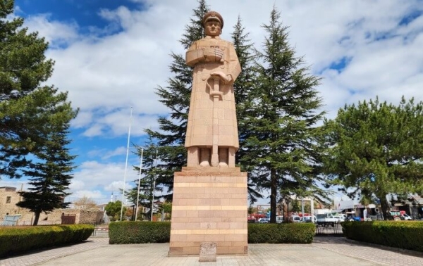 “Üstad şimdi burada. Yeni , Sovyetler Birliği’nden geldi. Ziyaretçisi hiç eksik olmaz.” Yürüyoruz Park içinde. Atatürk’ün ülkemizdeki en büyük anıtı. Mareşal üniformasıyla. Nevşehir’in ünlü Türkmendağ sarı taşından yapılmış. Aynı 1961’de Nevşehir Valiliği önündeki Süvari Atatürk anıtı görkeminde. Damat İbrahim Paşa anıtını da taa 1940 sonlarında yapıp Nevşehir Kaymakamlığı’na armağan etmiş.