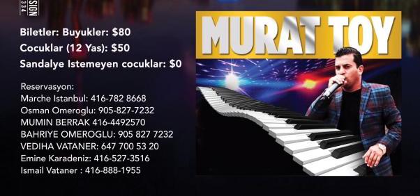 Toplumumuzun yakından tanıdığı ve sevdiği Murat Toy’un zengin müziği eşliğinde eğleneceğiniz, bu güzel geceye sizleri bekliyoruz.