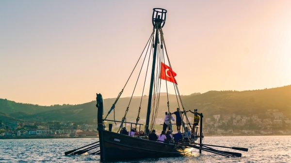 Homeros’un Rüzgârıyla Tarihe Yolculuk” sloganıyla antik yolculuğuna Dionysos’un Urla’sından demir alan at başlı Hippoi teknesi Alkaios’un Foça’sından Herodot’un Ayvalık’ına, Aristoteles’in Assos’undan geçerek destansı yolculuğunu Thucydides’in Bozcaada’sında tamamlayacak.