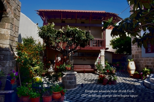 Kütüphane avlusunda Hafız-ı Kütüb Evi ile 1797 tarihli kuyu, geçmişin izlerini bugüne taşıyor.