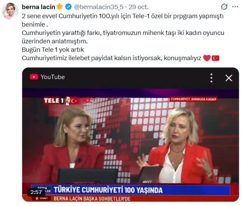 Bütün fedakâr TELE1 emekçilerine, ilk günden beri her türlü desteği veren izleyicilerimize, program ortağım Burçin Atılgan’a, tüm dostlara selam olsun!”